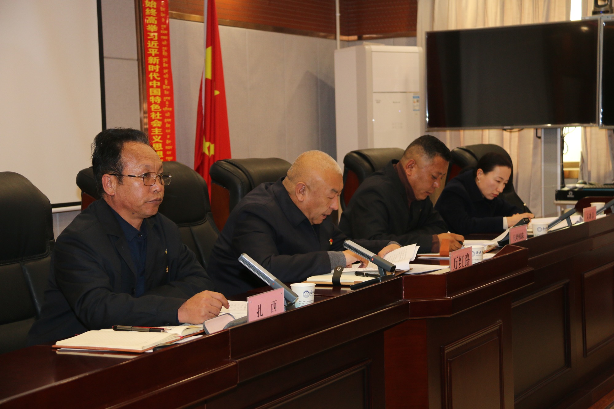 為深入學(xué)習(xí)貫徹習(xí)近平新時(shí)代中國(guó)特色社會(huì)主義思想,推動(dòng)黨中央重大決策部署在公司落地生根,11月19日下午,高爭(zhēng)股份公司召開習(xí)近平總書記在西藏視察時(shí)的重要講話精神宣講、黨的二十屆四中全會(huì)精神專題輔導(dǎo)暨公司黨委第六次理論學(xué)習(xí)中心組學(xué)習(xí)會(huì)。會(huì)議由公司黨委委員、副總經(jīng)理扎西主持,公司在家領(lǐng)導(dǎo)、總經(jīng)理助理,各部門及各車間中層以上管理人員,在拉薩的子公司主要負(fù)責(zé)人共計(jì)30余人參加會(huì)議。
