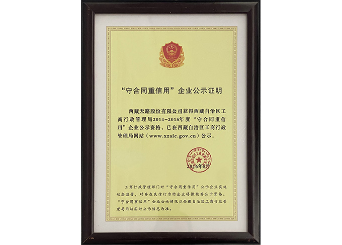 “天路”被評(píng)定為西藏自治區(qū)著名商標(biāo)
