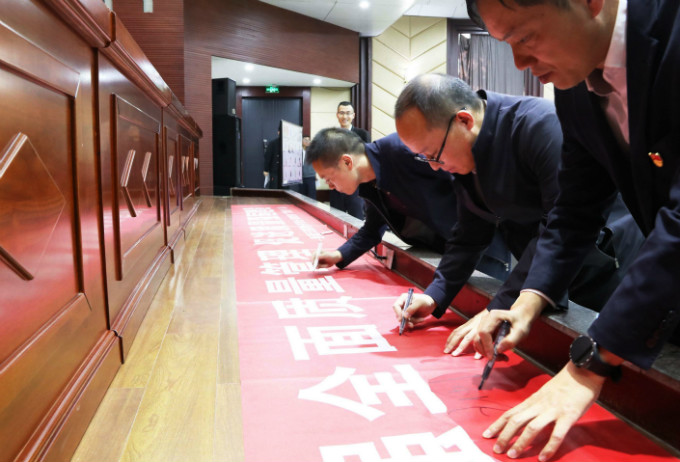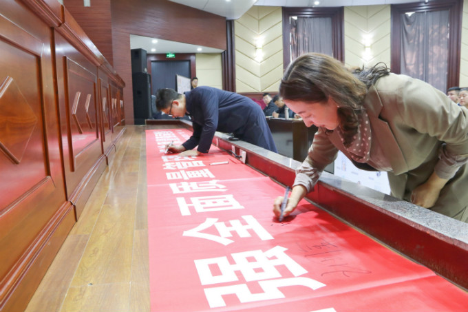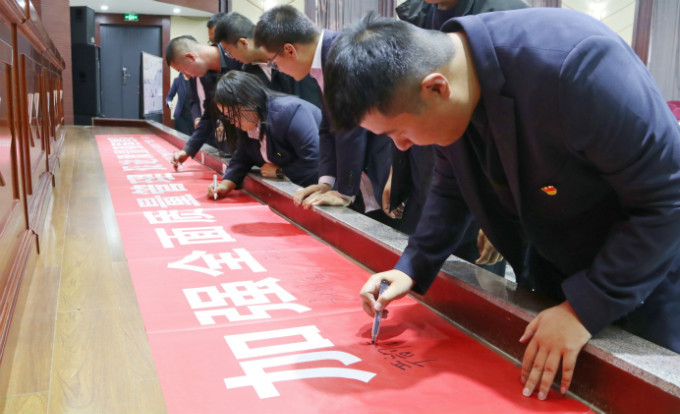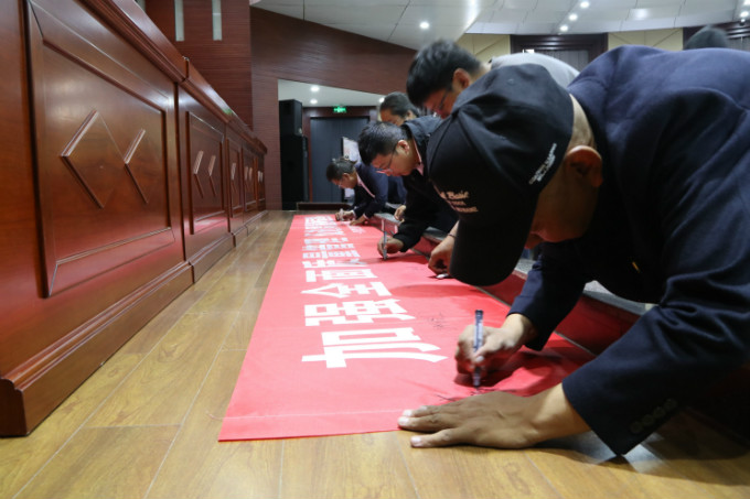 會(huì)后,全體參會(huì)人員在“質(zhì)量月”主題橫幅上簽字,鄭重做出質(zhì)量承諾。